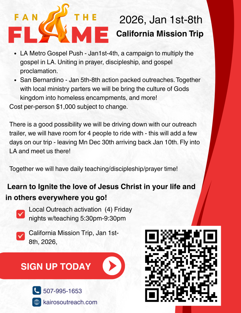 We are partnering with the FireBase Movement to bring up a team from southern MN to join the body of Christ in reaching the lost with the love of Jesus Christ! You are welcome to join us for one day, two days or for the whole week!