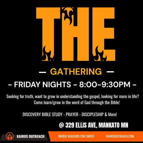All followers of Jesus Christ are called to go and make disciples of Jesus. (Matt 28:18-20). Every one of us has gifts and talents that God has given us. As we learn to love God first, loving our neighbors becomes more natural. At Kairos Outreach Ministries our goal is not just to bring the lost to Christ but to help His follows bridge the gap that keeps Christians from sharing Gods love with those that don’t know His love. Helping to equip and make opportunities to use your gifts to bless others to build Gods kingdom!
